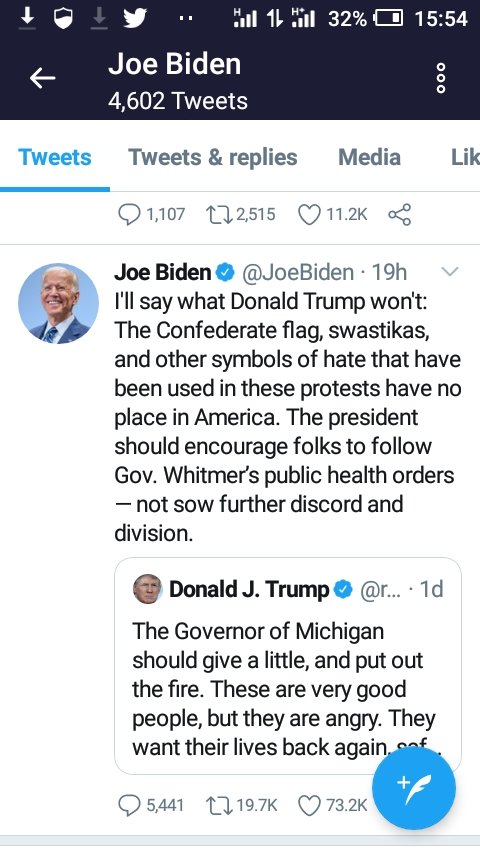 The president of the United States of America and the opposition candidate, Joe Biden talks tough. Here are some of the tweets: