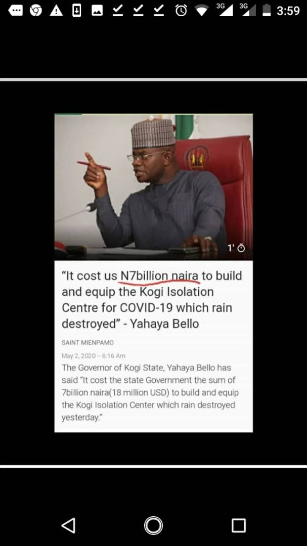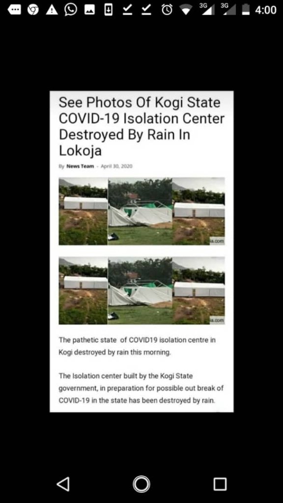 2 May 2020 K. Paul Kogi’s #7Billion Covid-19 Isolation Center: I don’t understand., Is this not the governor that said Covid-19 in Nigeria is a fraud? Share this: Share on X (Opens in new window) X Share on Facebook (Opens in new window) Facebook Share on WhatsApp (Opens in new window) WhatsApp More Share on LinkedIn (Opens in new window) LinkedIn Share on Pinterest (Opens in new window) Pinterest Like Loading... Related