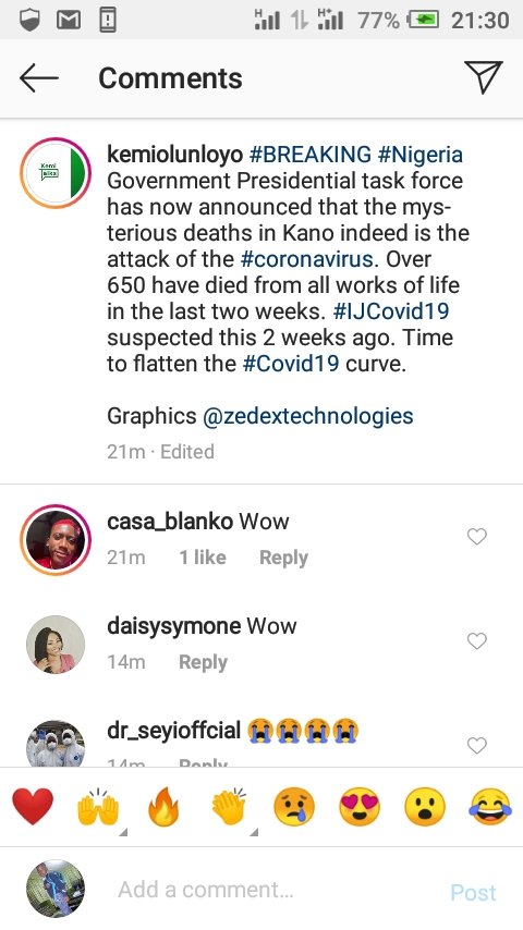 Kemi Olunloyo has revealed the cause of the numerous deaths in Kano State. She announced it via her Twitter account and claimed that the source of the news is PTF. Here is her tweet: