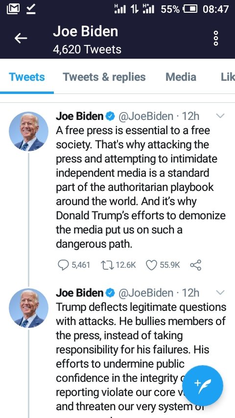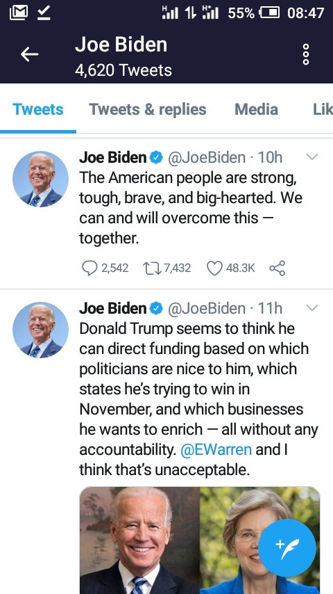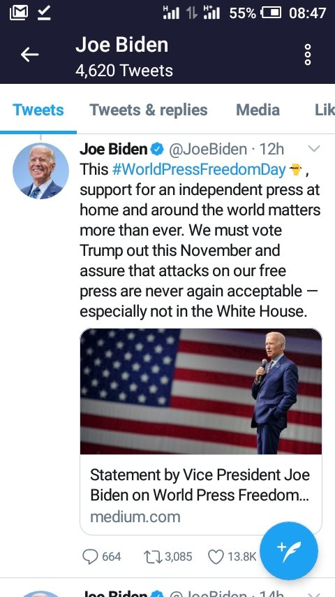 4 May 20204 May 2020 K. Paul JOE BIDEN HITS TRUMP HARD ON TWITTER The presidential candidate via his Twitter handle hits hard on President Trump. Here are some of his tweets: Share this: Share on X (Opens in new window) X Share on Facebook (Opens in new window) Facebook Share on WhatsApp (Opens in new window) WhatsApp More Share on LinkedIn (Opens in new window) LinkedIn Share on Pinterest (Opens in new window) Pinterest Like Loading... Related