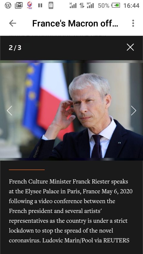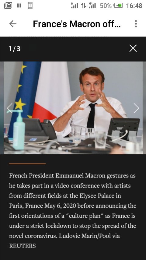 French president Emmanuel Macron promised guaranteed stipends for out-of-work actors and money for filmmakers whose productions have been cancelled, as part of a bailout for an arts industry shut down by the coronavirus.French President Emmanuel Macron gestures as he takes part in a video conference with artists from different fields at the Elysee Palace in Paris, France May 6, 2020 before announcing the first orientations of a “culture plan” as France is under a strict lockdown to stop the spread of the novel coronavirus.