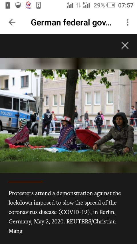 The German federal government and the states have agreed that all shops and amateur open-air sports can restart under certain conditions and states will each decide on a gradual opening of various aspects of public life, a draft document showed. Protesters attend a demonstration against the lockdown imposed to slow the spread of the coronavirus disease (COVID-19), in Berlin, Germany.