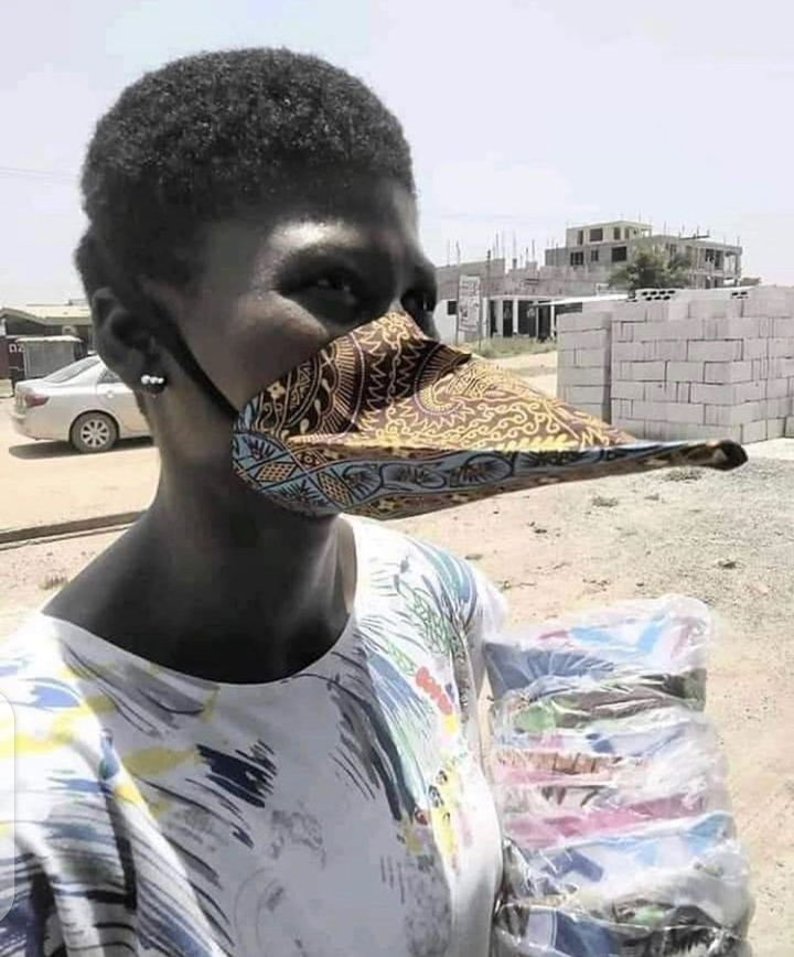 A picture of a saleswoman wearing Ankara Nose Mask with a bag of other Nose mask just went viral on social media with several comment because of its weirdness.
