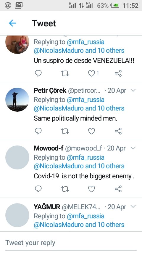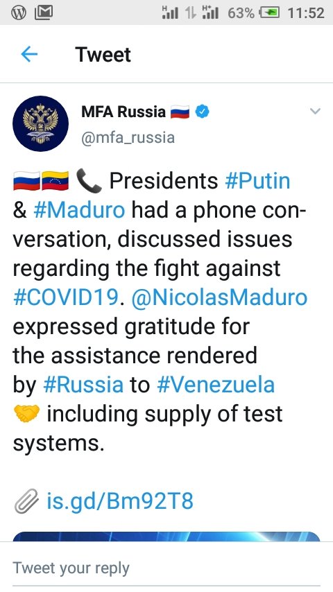 MFA RUSSIA@mfa_russia tweeted the meeting of the RUSSIAN PRESIDENT, PUTIN and Maduro. He said both leaders will be meeting to discuss issues regarding the fight against Covid-19,.but the responses were very odd..