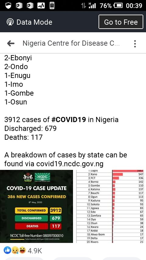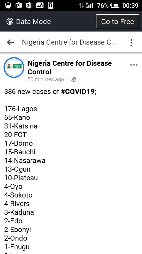 Nigeria records 386 new cases of Covid-19 as stated by NCDC through it’s social handle , 9/05/2020. Lagos State retaining the epic centre.