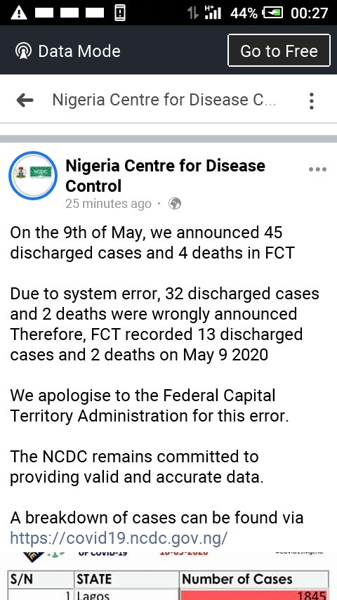 10 May 2020 K. Paul The NCDC APOLOGIZED FOR THE ERROR MADE YESTERDAY- FB Share this: Share on X (Opens in new window) X Share on Facebook (Opens in new window) Facebook Share on WhatsApp (Opens in new window) WhatsApp More Share on LinkedIn (Opens in new window) LinkedIn Share on Pinterest (Opens in new window) Pinterest Like Loading... Related