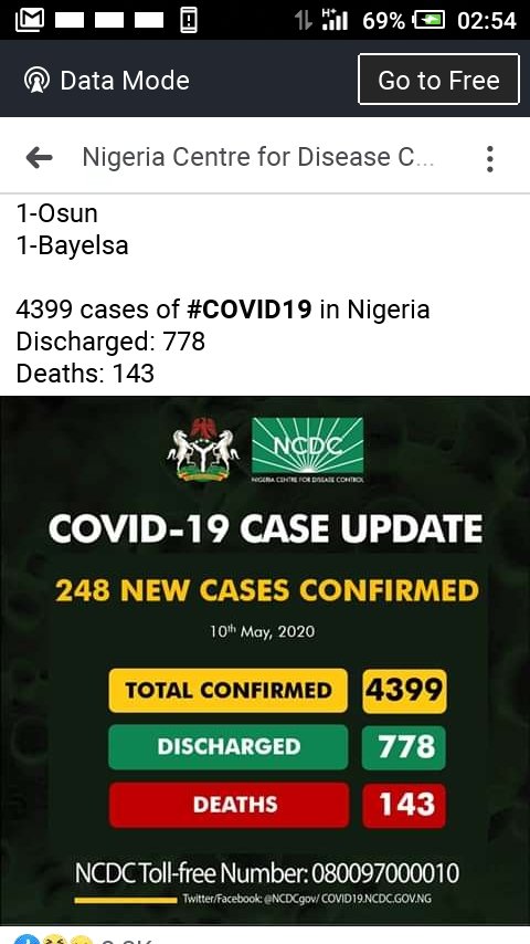 11 May 202011 May 2020 K. Paul Covid-19 UPDATE: 248 NEW CASES IN NIGERIA , TOTALLING 4399 CASES – NCDC Share this: Share on X (Opens in new window) X Share on Facebook (Opens in new window) Facebook Share on WhatsApp (Opens in new window) WhatsApp More Share on LinkedIn (Opens in new window) LinkedIn Share on Pinterest (Opens in new window) Pinterest Like Loading... Related