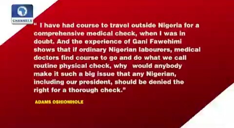 In an interview with Terry Ikumi on Channels Television’s Hard Copy, Oshiomhole claimed that he doesn’t travel abroad for medical treatment.