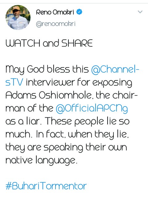 Channels TV Presenter has exposed the lies of Adams Oshiomhole, the National Chairman of the All Progressives Congress.