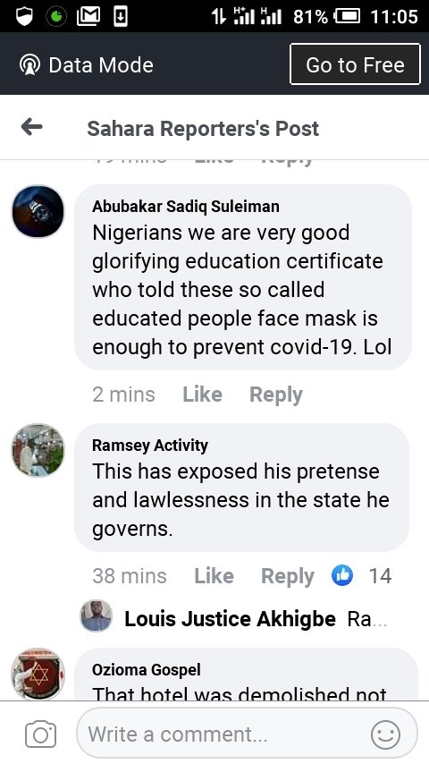 Social media went gaga after Sahararepoter shared via it’s facebook page a picture of the governor not observing social distancing rule at an occasion.