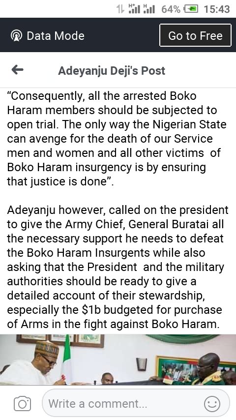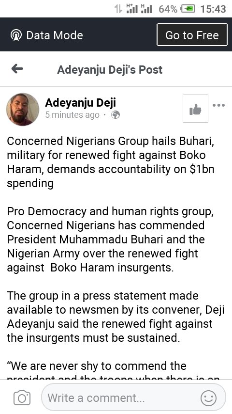 The leader of the Concerned Nigerian Group, Mr Deji Adeyanju via his facebook page hail president Buhari and the Nigerian military for the renewed fight against bokoharam.