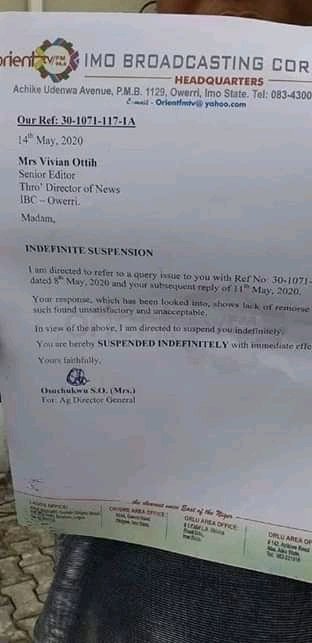 In short, the lady has been suspended indefinitely. Here is her letter of suspension……