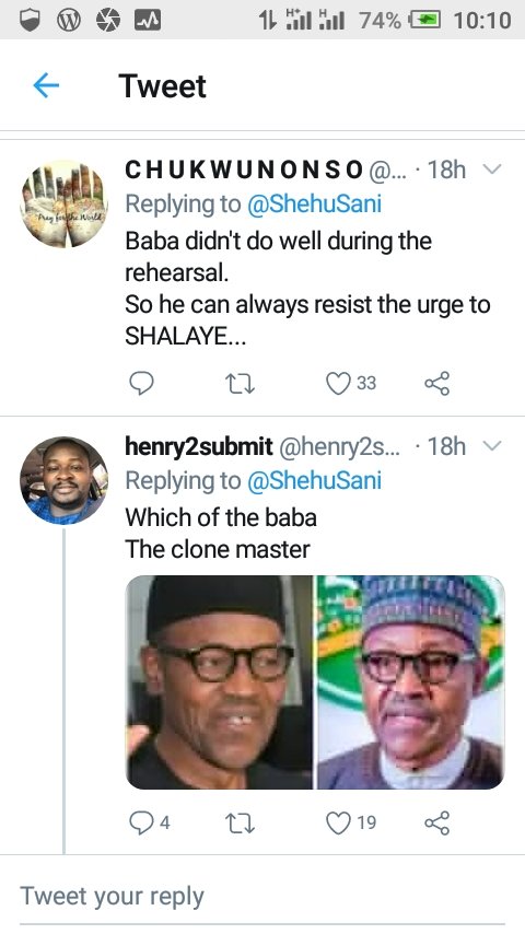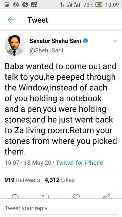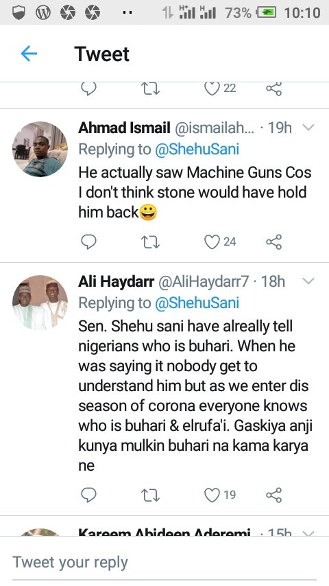 19 May 2020 K. Paul SEN. SHEHU SANI ON THE CANCELLED PRESIDENTIAL BROADCAST AND NIGERIAN’S REACTIONS – Twitter Share this: Share on X (Opens in new window) X Share on Facebook (Opens in new window) Facebook Share on WhatsApp (Opens in new window) WhatsApp More Share on LinkedIn (Opens in new window) LinkedIn Share on Pinterest (Opens in new window) Pinterest Like Loading... Related