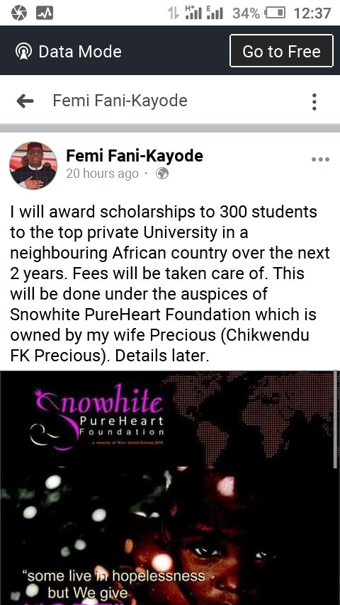 ” I will award scholarship to 300 students to the top private university in a neighboring African country over the next two years. Fees will be taken care of .”