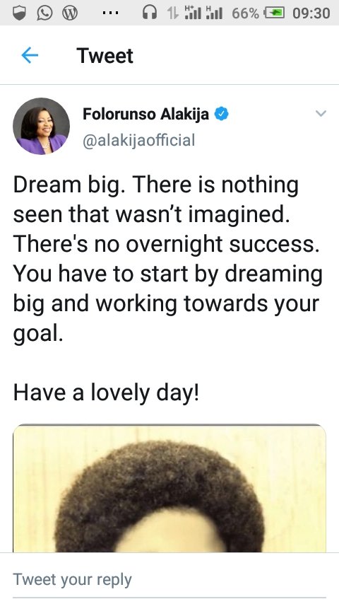 According to her, success is not overnight, you have to start by dreaming big and working towards your goal.