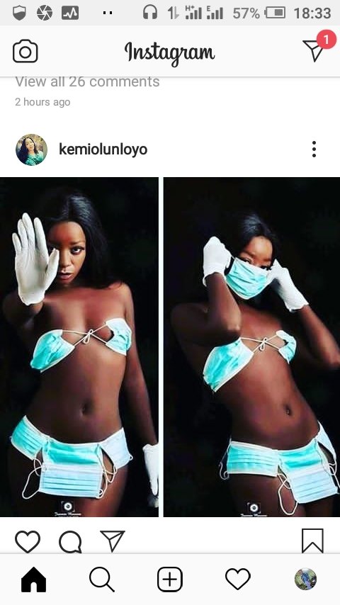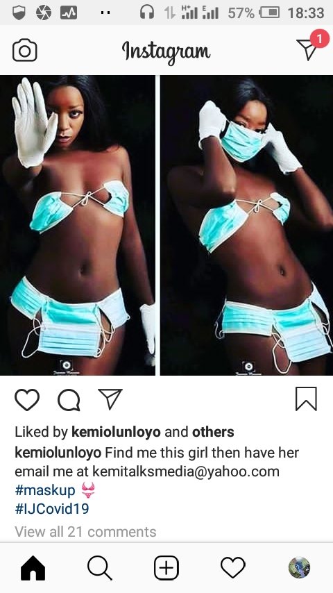 The investigative journalist shared a picture of a girl. She has facemasks covered her private parts only.