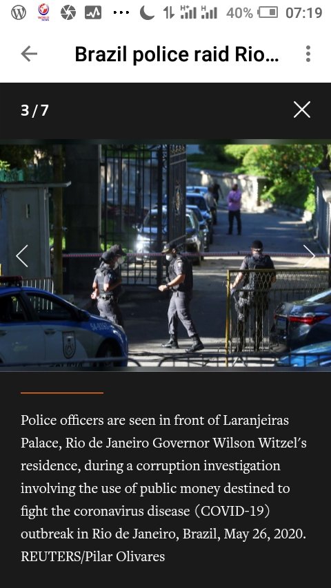Brazil Police Raid Rio Governor’s Residences Amid COVID-19 Probe.