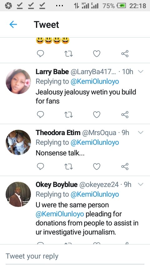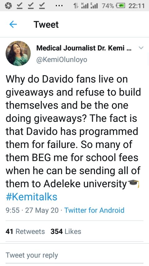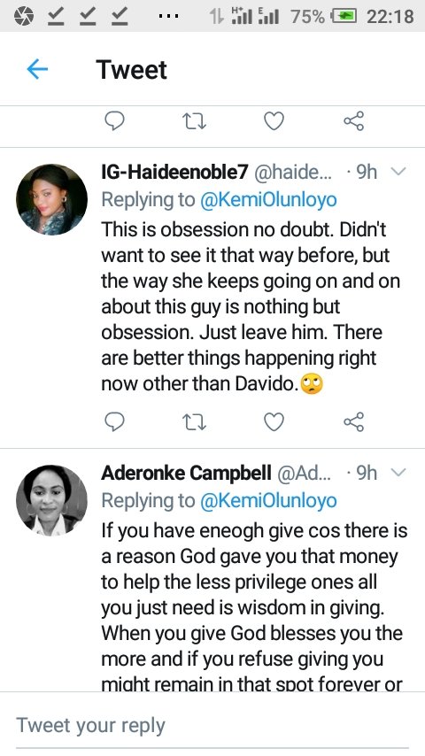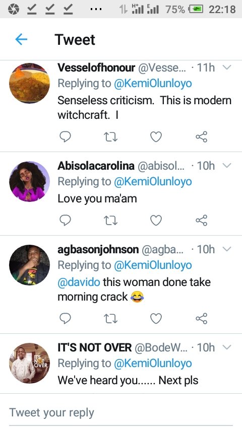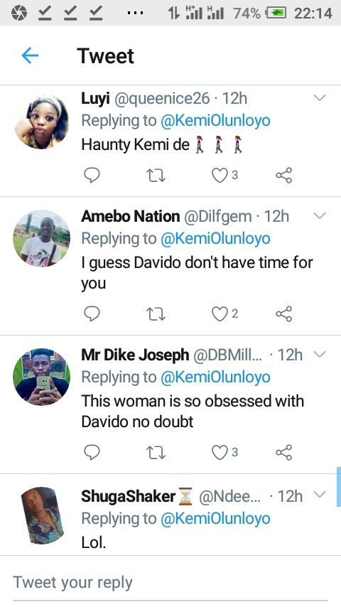 Kemi Olunloyo’s been a suspect of obsession with Davido. She never supported the OBO led crew,. always criticizing the legend’s move. But she heard it all today and she’s not posted anything after.