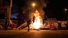 Stores were set alight and officers fired tear gas and rubber bullets.