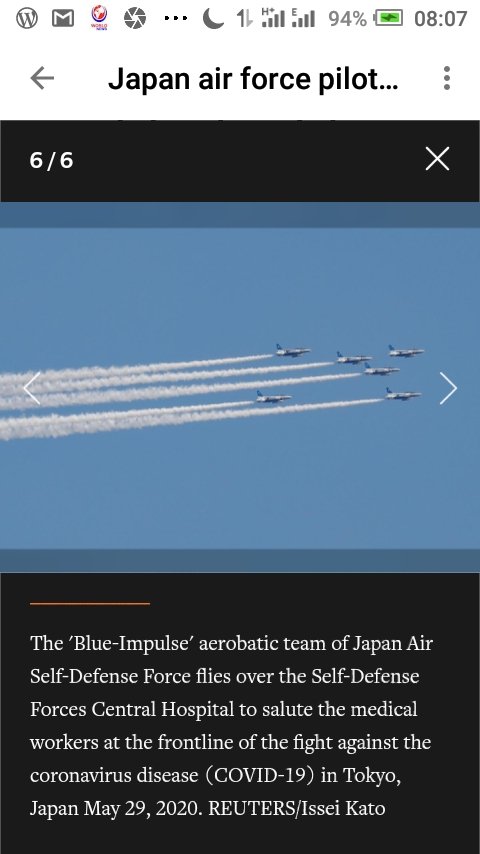 The Japanese air force’s aerobatic demonstration squadron, Blue Impulse, flew over central Tokyo on Friday in a salute to medical workers on the frontline against the coronavirus pandemic.