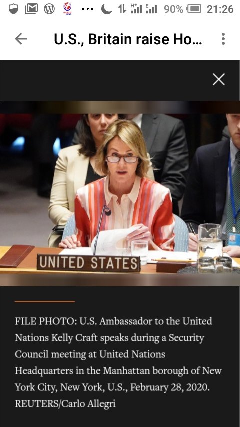 U.S. Ambassador to the United Nations Kelly Craft speaks during a Security Council meeting at United Nations Headquarters in the Manhattan borough of New York City, New York, U.S
