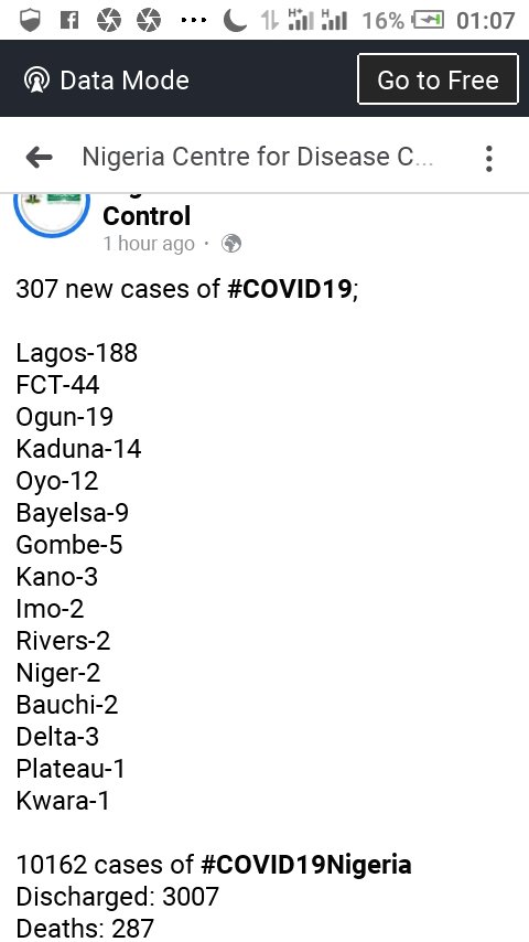 1 Jun 2020 K. Paul COVID-19 UPDATE: 307 NEW CASES RECORDED — NCDC Nigeria’s total confirmed cases now hit 10,162. Below is the breakdown:- Share this: Share on X (Opens in new window) X Share on Facebook (Opens in new window) Facebook Share on WhatsApp (Opens in new window) WhatsApp More Share on LinkedIn (Opens in new window) LinkedIn Share on Pinterest (Opens in new window) Pinterest Like Loading... Related