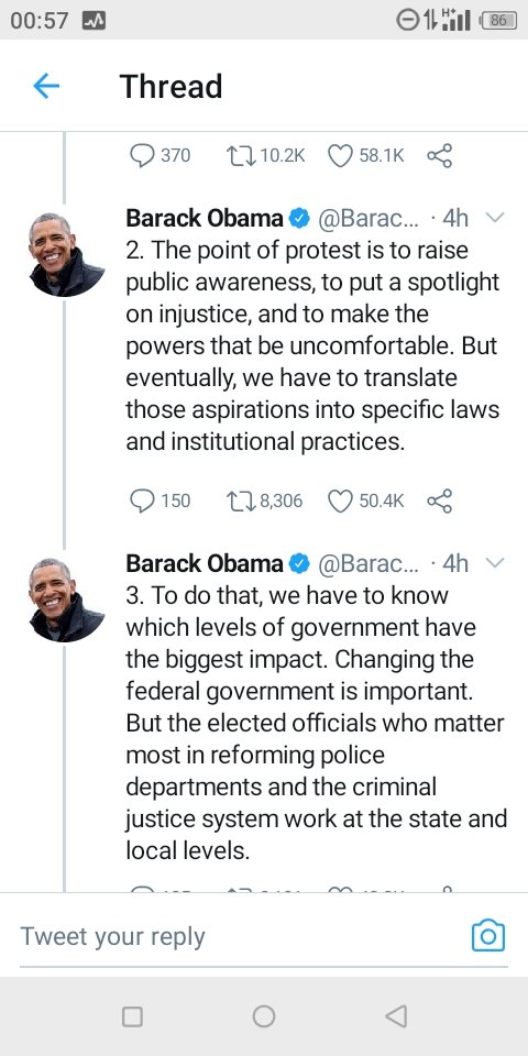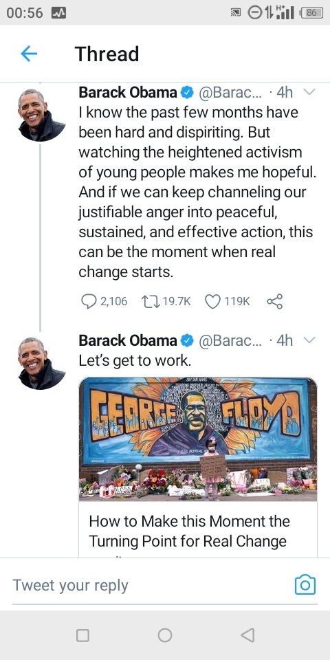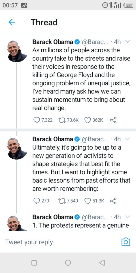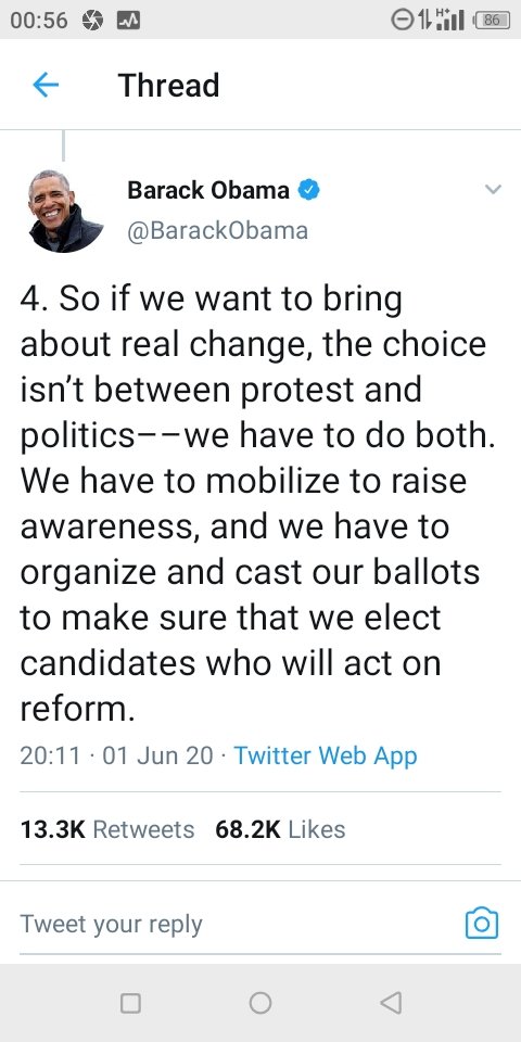2 Jun 2020 K. Paul “So If We Want To Really Bring About Real Change, We Have To Do Both Protest And Politics” — Barack Obama Joins Protests. Share this: Share on X (Opens in new window) X Share on Facebook (Opens in new window) Facebook Share on WhatsApp (Opens in new window) WhatsApp More Share on LinkedIn (Opens in new window) LinkedIn Share on Pinterest (Opens in new window) Pinterest Like Loading... Related