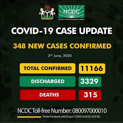 3 Jun 2020 K. Paul Nigeria Records 348 New Cases. Share this: Share on X (Opens in new window) X Share on Facebook (Opens in new window) Facebook Share on WhatsApp (Opens in new window) WhatsApp More Share on LinkedIn (Opens in new window) LinkedIn Share on Pinterest (Opens in new window) Pinterest Like Loading... Related