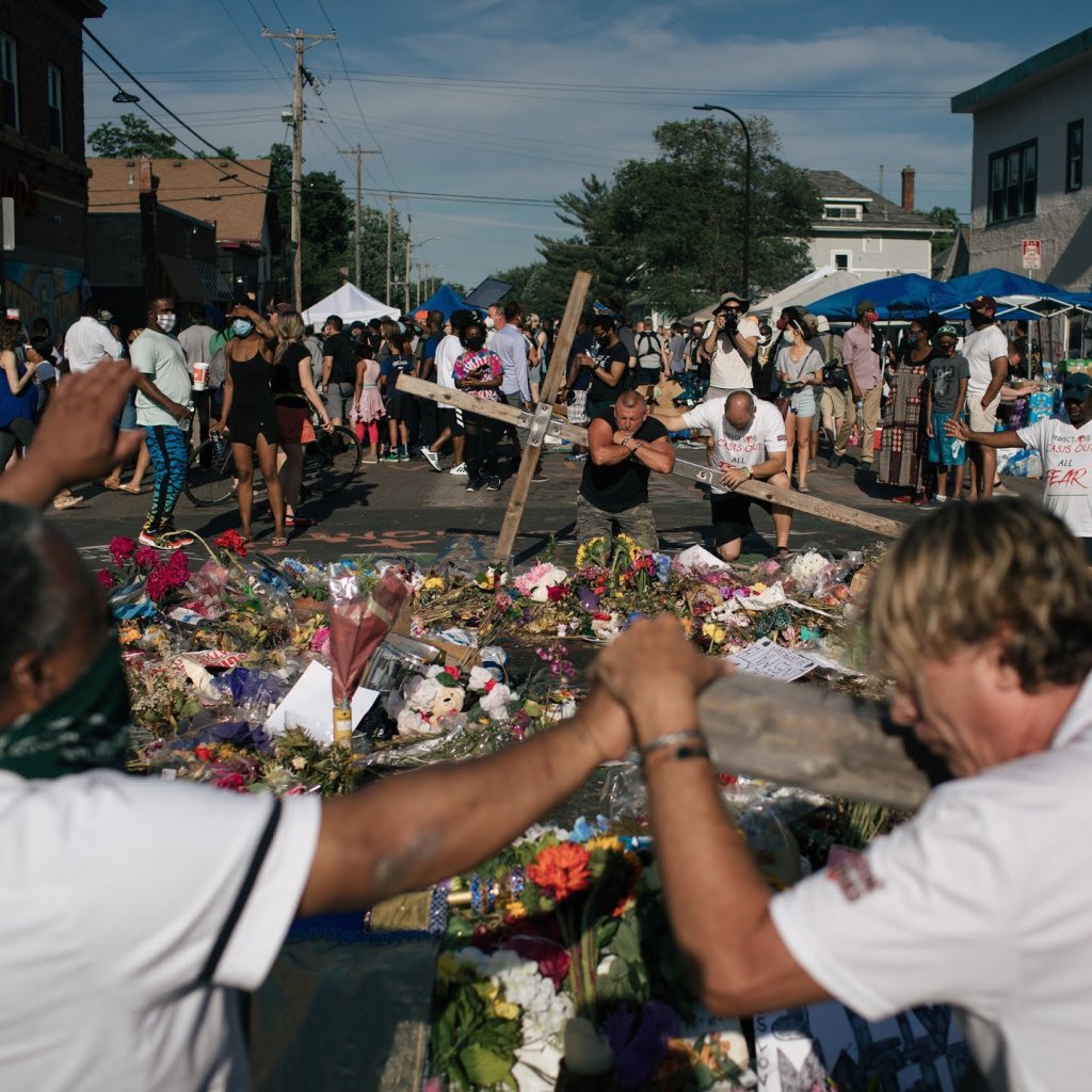 Since then crowds have gathered day and night in Minneapolis for huge protests – marred by bouts of violent unrest and looting – and to pay tribute at the site where Floyd was pinned to the street during an arrest attempt.
