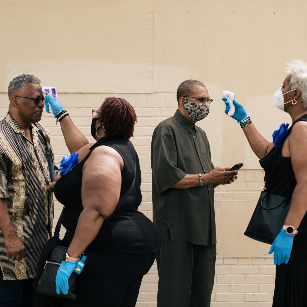 Anthony Thornton, a 70-year-old African American computer hardware designer, arrived hours ahead of the service and was the first to set himself up in a beach chair outside.