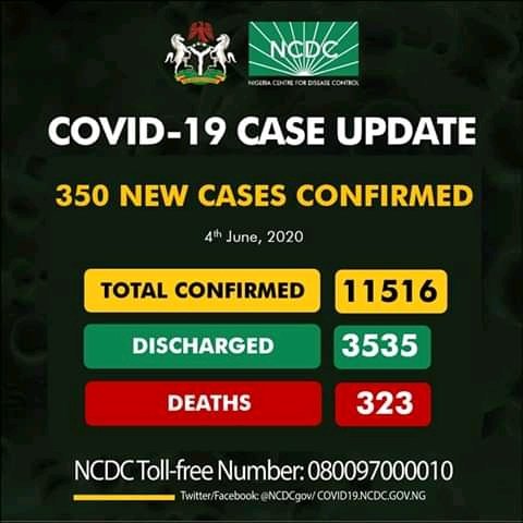 5 Jun 2020 K. Paul Nigeria Recorded 350 New Cases Of Covid-19 Share this: Share on X (Opens in new window) X Share on Facebook (Opens in new window) Facebook Share on WhatsApp (Opens in new window) WhatsApp More Share on LinkedIn (Opens in new window) LinkedIn Share on Pinterest (Opens in new window) Pinterest Like Loading... Related