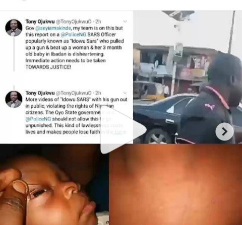 “Gov @seyiamakinde, my team is on this but this report on a @PoliceNG SARS Officer popularly known as “Idowu Sars” who pulled up a gun & beat up a woman & her 3 month old baby in Ibadan is disheartening. Immediate action needs to be taken TOWARDS JUSTICE!”