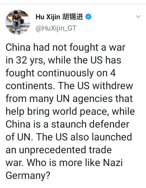 Hu Xijin is a Chinese journalist and editor of the Global Times, a state-owned tabloid in the People’s Republic of China.