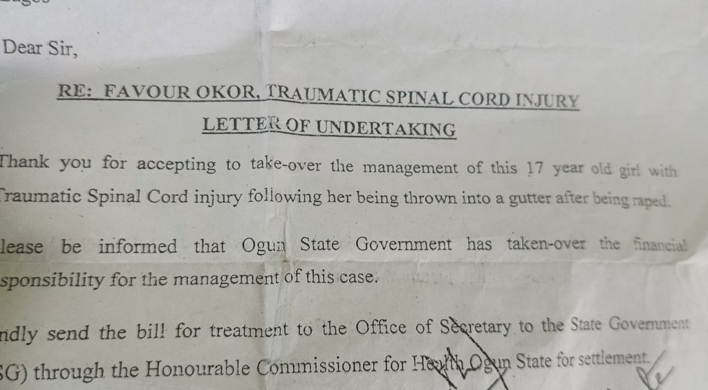 A 17-year-old girl, Favour has been in coma after being beaten, raped and abandoned inside a gutter to die in Ogun State.