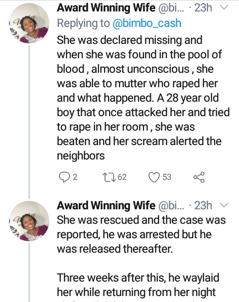 The man who raped had initially tried to rape her in her room, but Favour’s scream alerted neigbours and she was rescued.