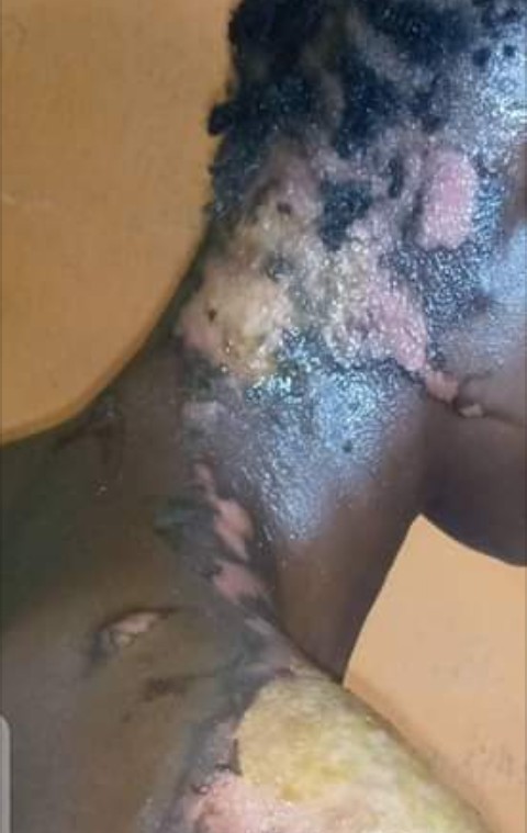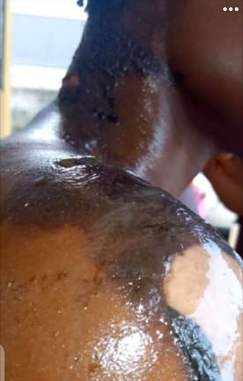 “My neighbor poured me hot water..Bcz I want to sperate fight b/w she and my little brother.According to her she said my little brother drop dirty infront of her shop and she ask him to pick it up …but the little boy did not and she started beating him..and my mum saw her beating her son and tell her to stop…but she insisted then my mum flagged her with Stick ..and she hold my mum’s cloth…when I get there and question her y is she holding my mum’s cloth .. she narrated the story asking me if is good …I said no ..but she don’t have any right to beat the small boy ..she could have reported it to my mum.. before I knew it she went and brought hot water and pure me.