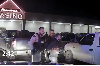 One officer briefly grabs Adam’s wife, Freda Courtoreille, as she stands near the back of the truck. Adam yells at the officer not to touch Courtoreille, who has late-stage rheumatoid arthritis.