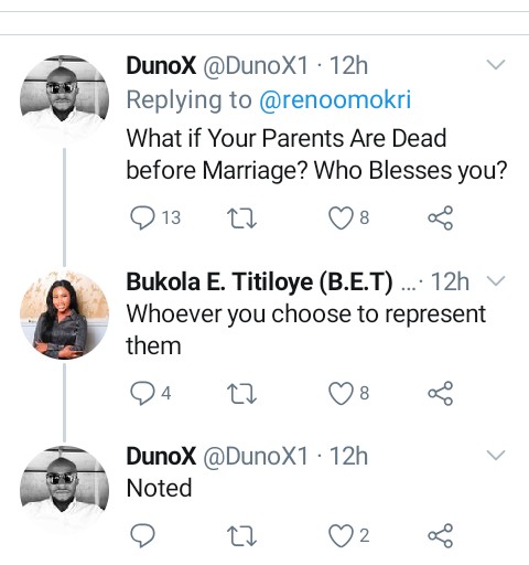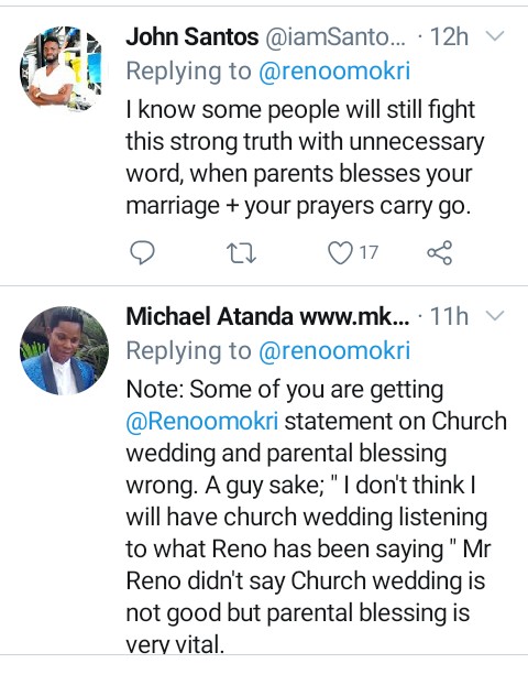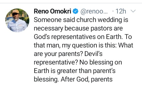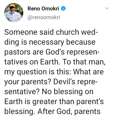 Holy matrimony only involves the couple and their parents. That is why the only commandment amongst the Ten Commandments with a blessing attached to it is “Honor your father and your mother, that your days may be long upon the land which the Lord your God is giving you” (Exodus 20:12) — Reno Omokri