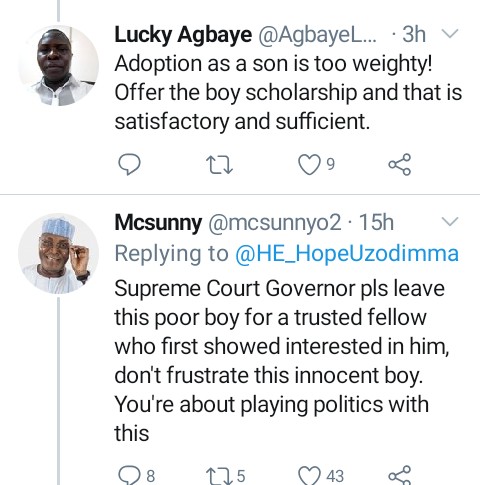 In a recent development, Governor Hope Uzodinma via twitter wrote;