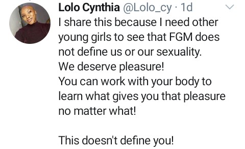 I share this because I need other young girls to see that FGM does not define us or our sexuality.
