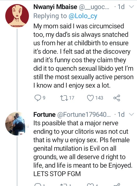 Lolo Ihesie added that despite being circumcised and not having a clitoris head , she has been able to play around it to find her G spot.