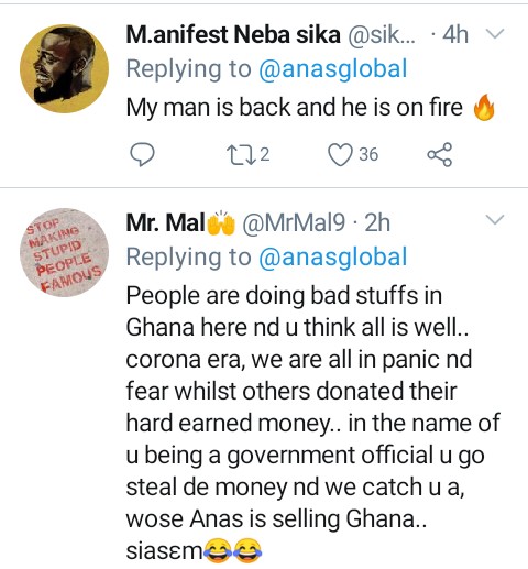 Ghanaians have being reacting to the post as expected, but an unusual twitter user @donaldtrmp4real replied to Anas’s tweet as follows: