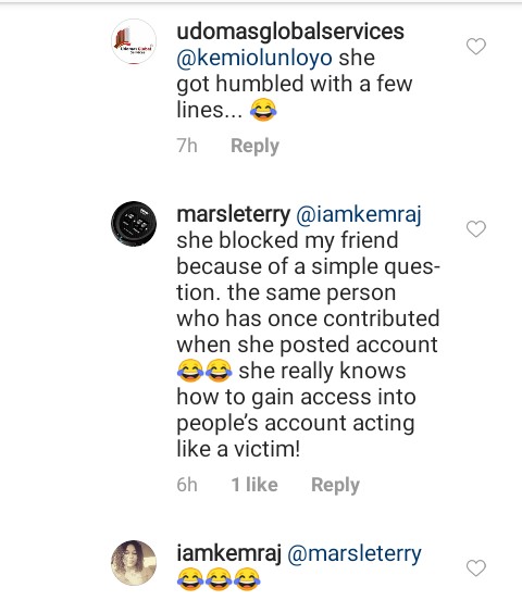 It started when she was confronted by one twitter user with the name, mhizberry accusing her of being against Hushpuppi and supporting Naira Marley.