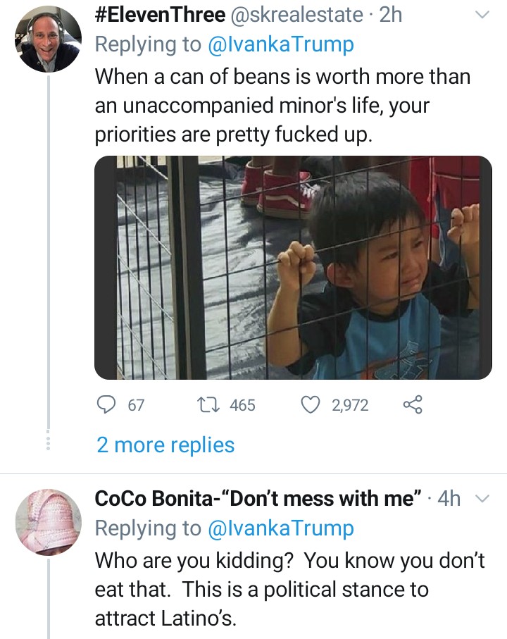 Ivanka Trump is facing backlash after tweeting a photo of herself holding up a can of Goya beans. The tweet from the president’s daughter includes Goya’s slogan, “If it’s Goya, it has to be good,” in both English and in Spanish. She also posted the image to her Facebook and Instagram pages.