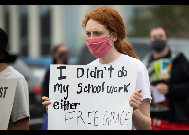“It didn’t seem like the judge or the caseworker knew how grades and due dates and things were structured during the pandemic shutdown in the spring,” Geoff Wickersham, a social studies teacher at Grove, told Reuters at the protest. “I think this is a huge injustice.”