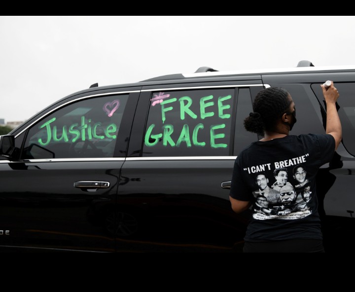 On Thursday afternoon, protesters assembled at Groves High School in the suburb of Beverley Hills before they drove to the Oakland County’s Circuit Court and prosecutor’s office holding up signs with calls to “Free Grace.”