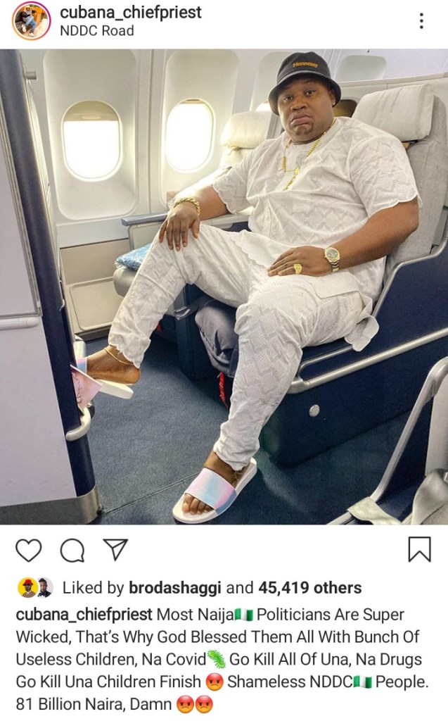 The popular businessman shared a post via his instagram page attacking nigerian politicians and Niger Delta Development Commission.