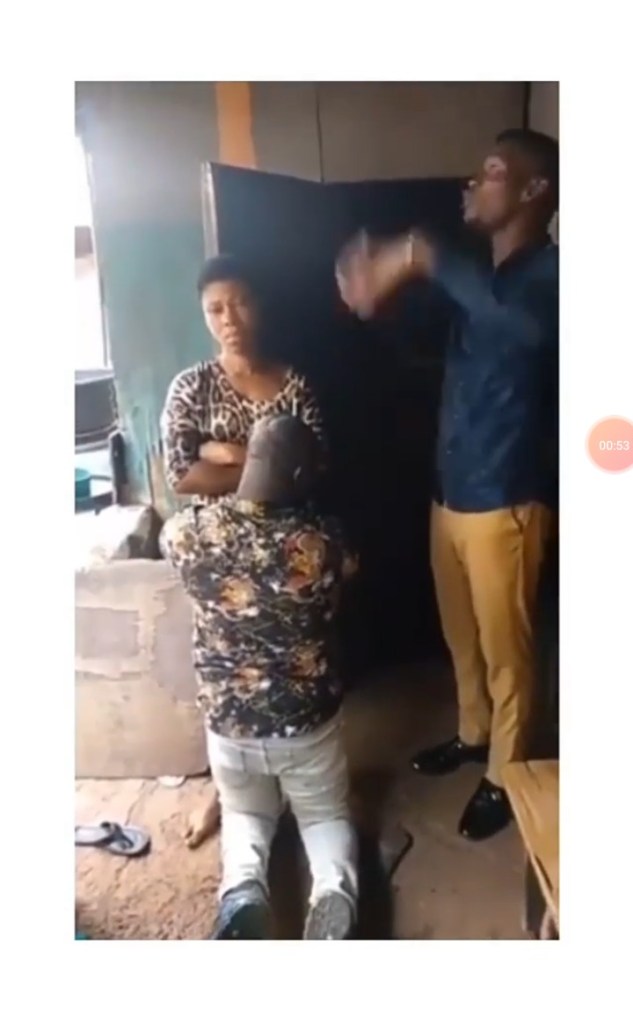 A video making the rounds on social media has shown the moment a Nigerian man went on his knees to beg his wife for forgiveness, in the presence of a pastor.