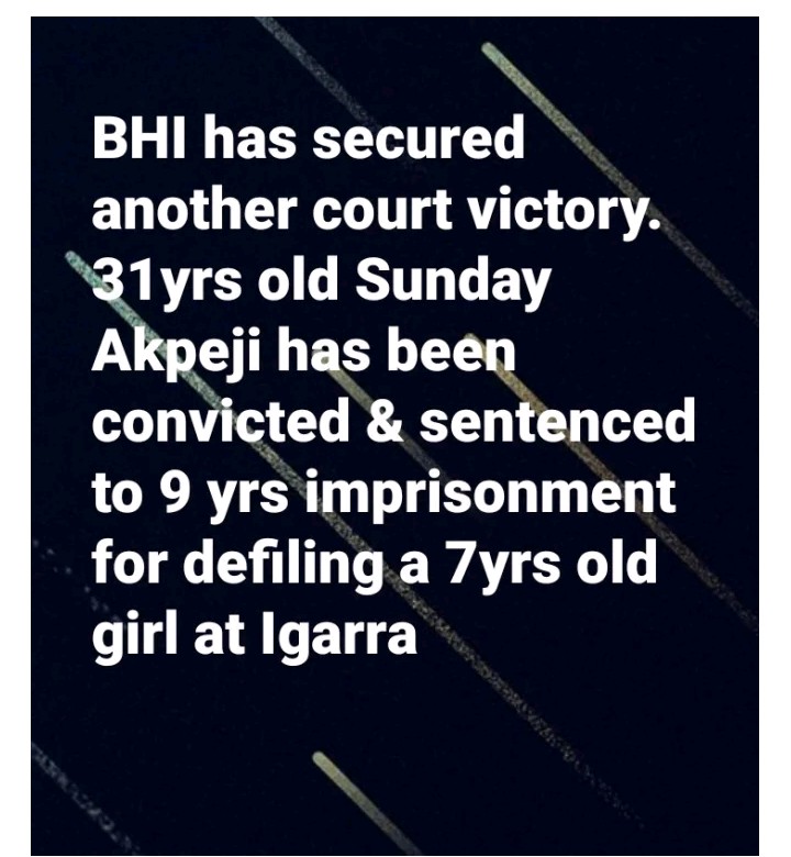 A man has been sentenced to 9 years in prison for defiling a 7-year-old girl in Igarra, Akoko-Edo, Edo state.