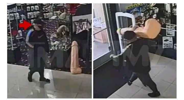 According to the police report, the guy whose ID was concealed by a face mask, flee with the sex toy in a white car, similar to a Dodge Caliber.